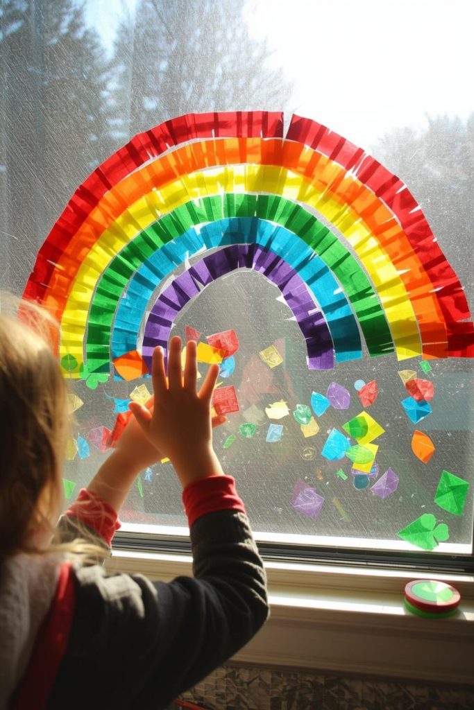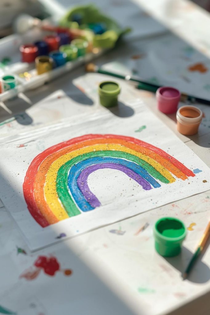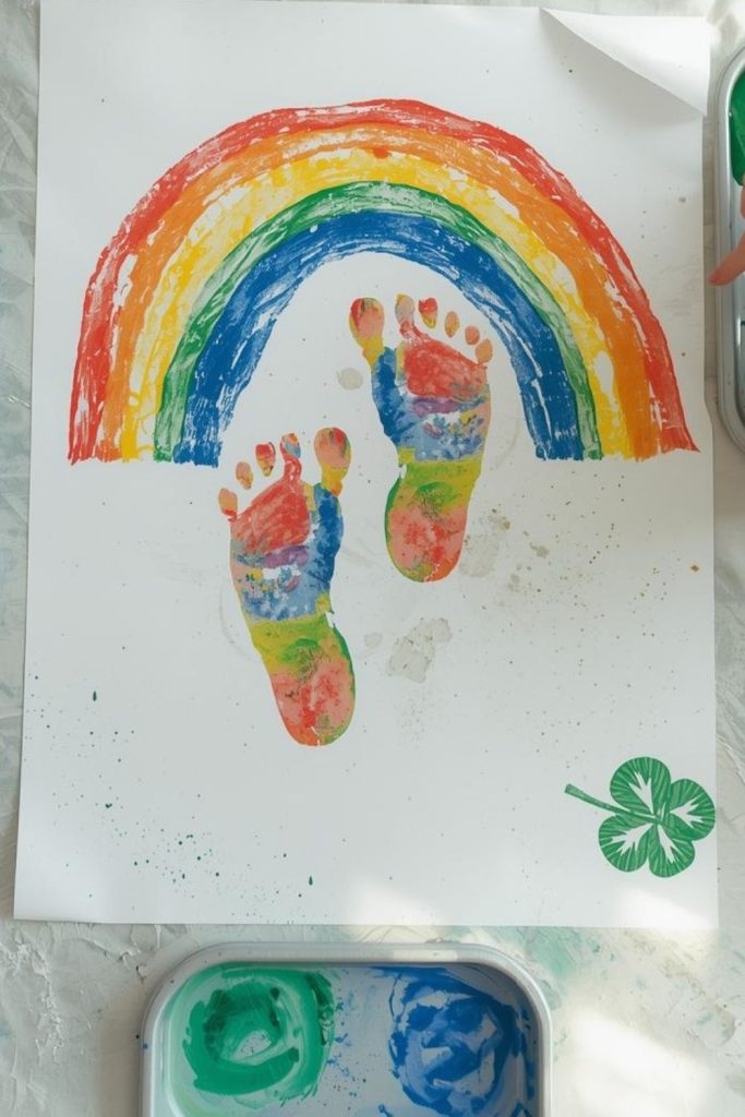 Bring bright colors to your St Patrick’s Day celebration with rainbow handprint art. Kids love pressing painted hands onto paper, and glitter adds a festive sparkle.