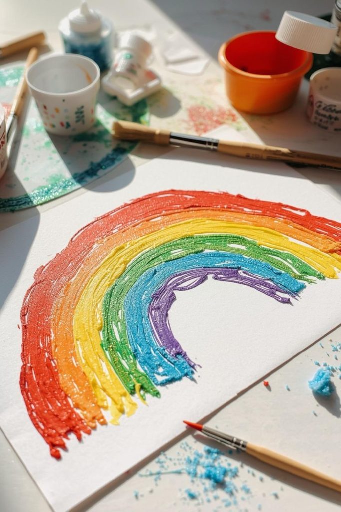 1. Rainbow Handprint Art with Glitter Accents