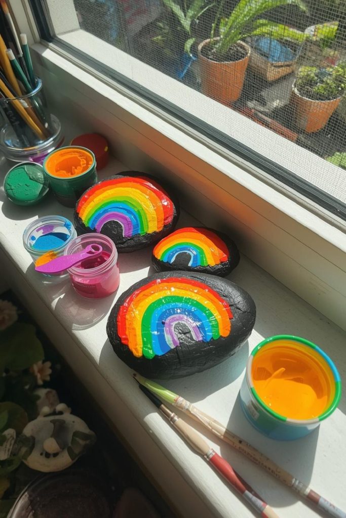 17. Painted Rock Rainbows for Garden or Windowsill Display