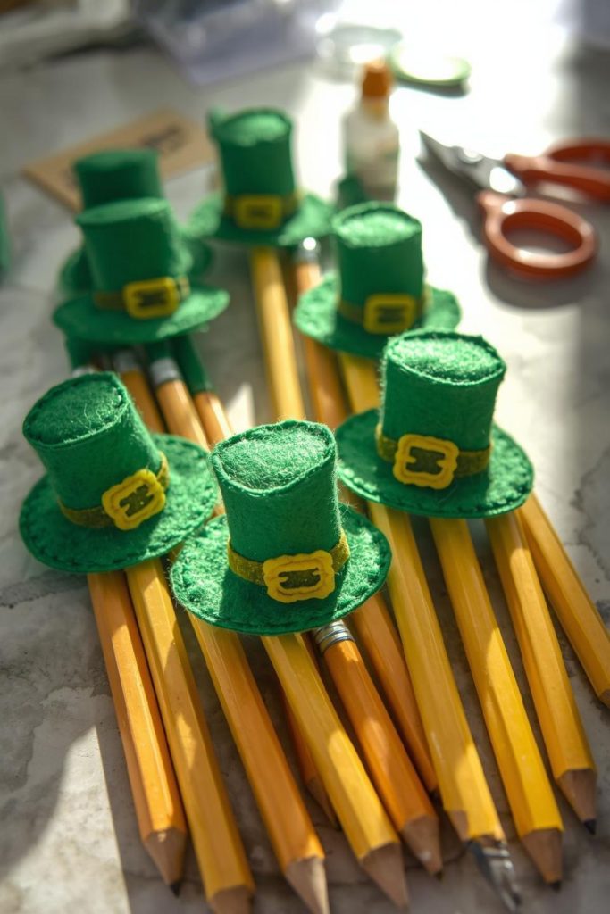 23. Leprechaun Hat Pencil Toppers Using Felt and Glue