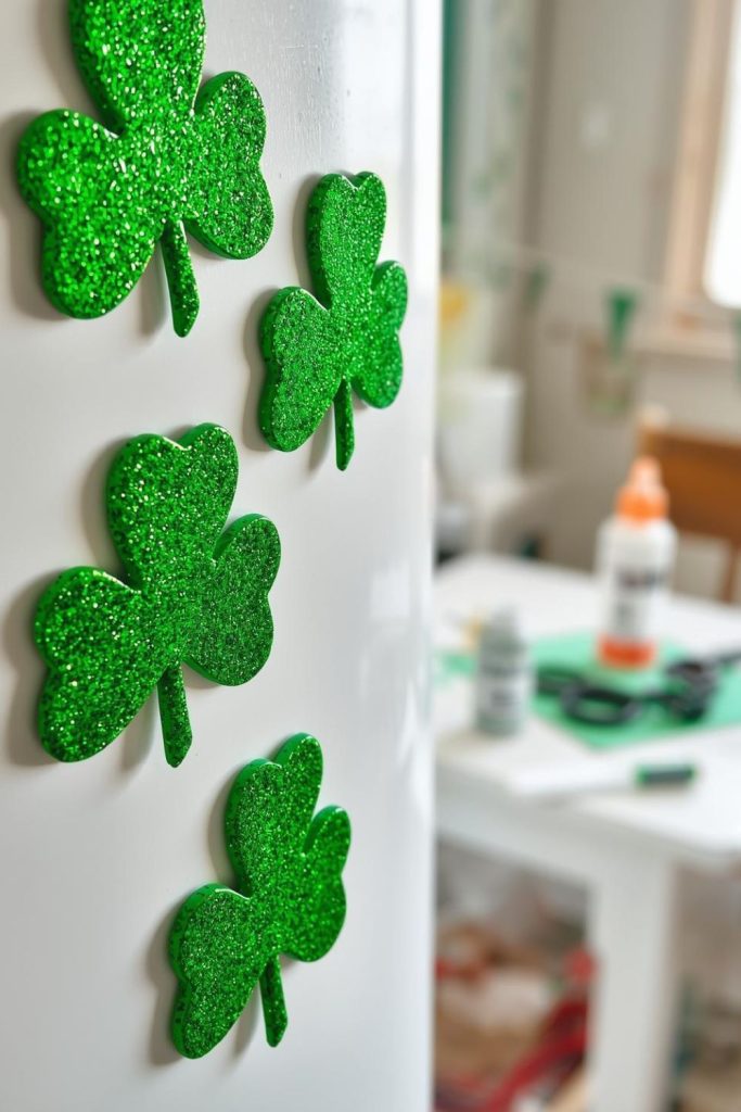 24. Glittery Shamrock Magnets for the Fridge