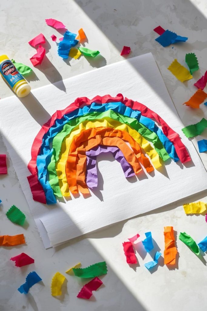 25. Rainbow Mosaic Art Using Torn Colored Paper