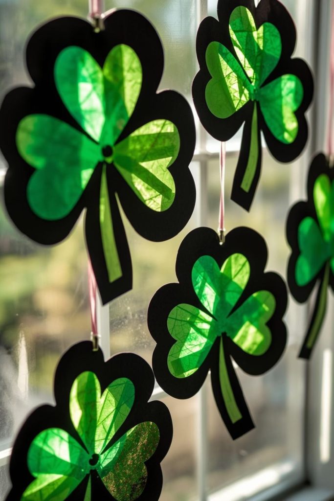 3. Shamrock Sun Catchers Using Colored Tissue Paper
