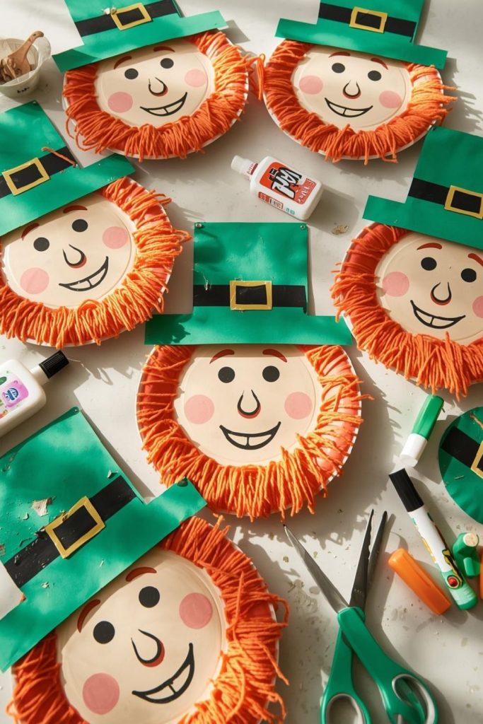 5. Paper Plate Leprechaun Faces with Yarn Beards