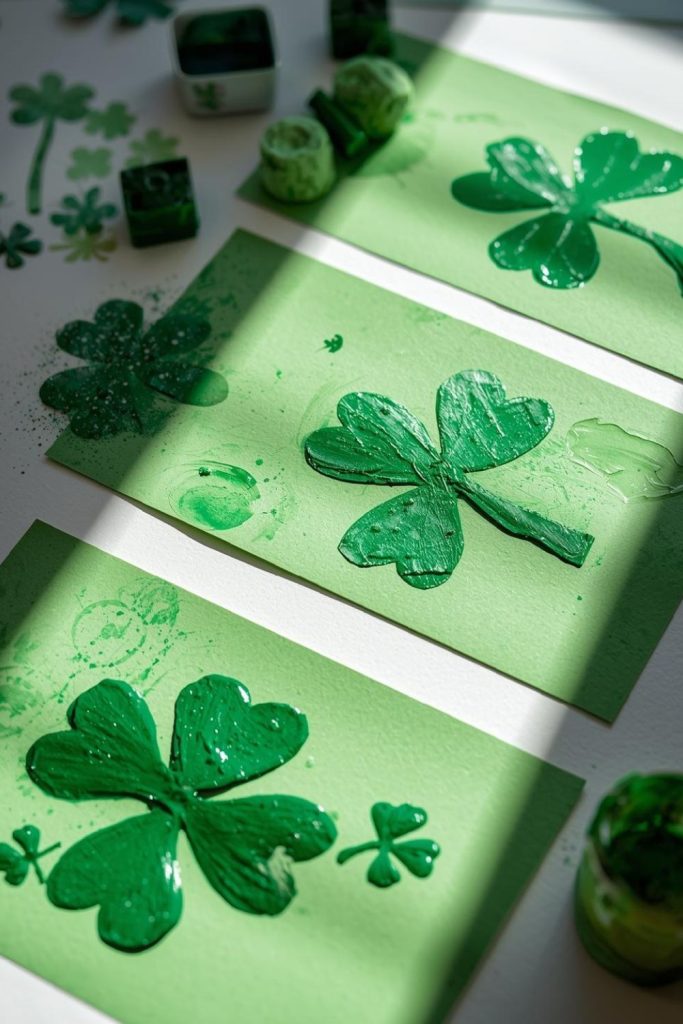 7. Shamrock Stamping with Green Paint on Cardstock