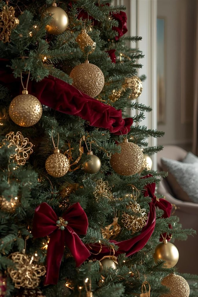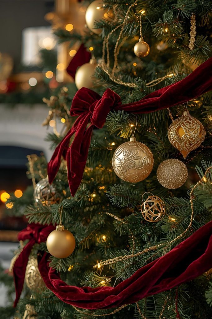 Velvet Ribbon Accents for Elegant Christmas Tree Decor Ideas