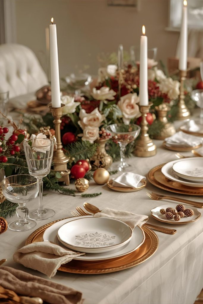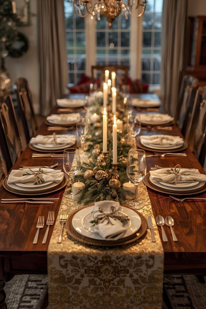 Gilded table runners in gold or bronze tones add a layer of warmth to your dining space. They work beautifully under china and glassware, providing a luxurious base for your elegant Christmas decor that enhances the overall setting without overpowering it.