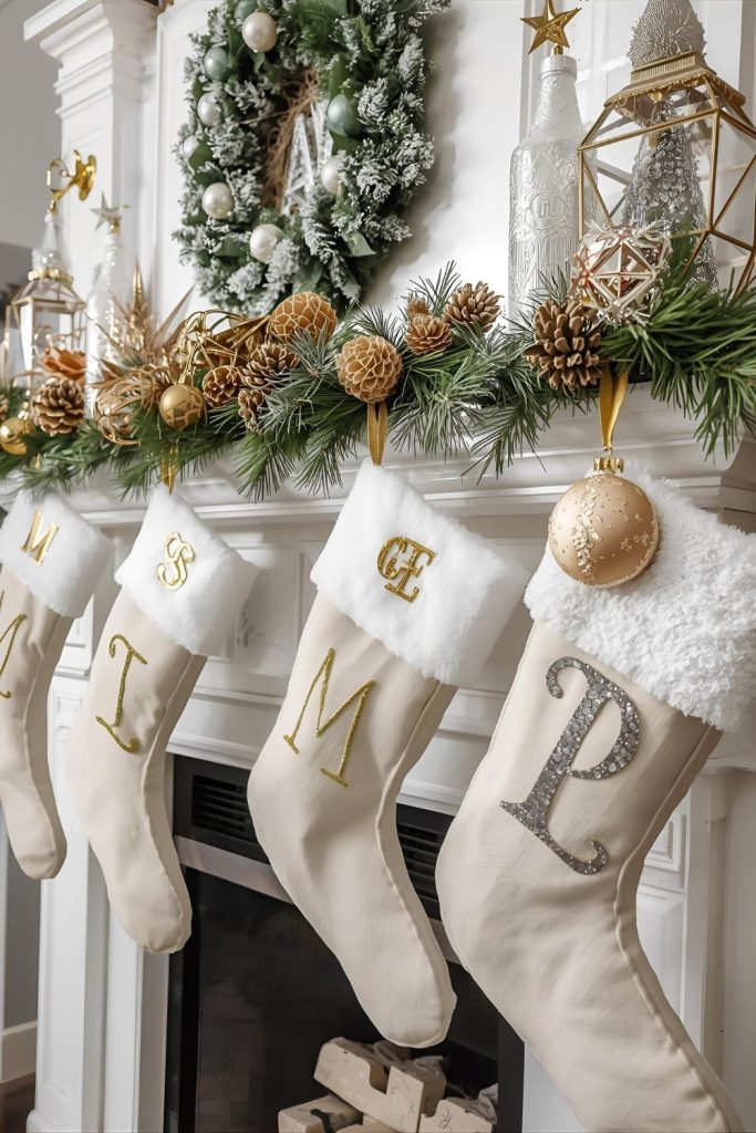 Monogrammed ornaments, stockings, or gift tags add a personal touch to your holiday decor. These small but thoughtful details bring an extra layer of class, making your elegant Christmas decor feel unique and intentional.