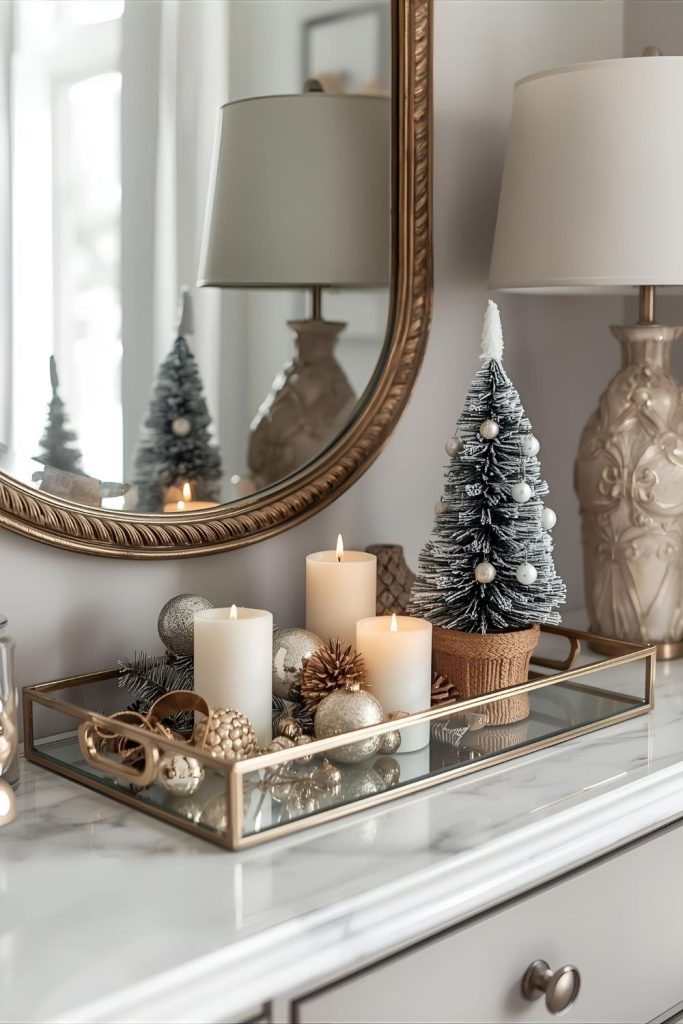 Mirrored Trays for Adding Depth to Your Bathroom and Bedroom Holiday Decor