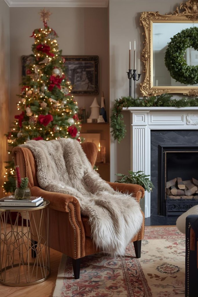 Faux fur throws bring softness and warmth, balancing the cooler tones often found in elegant Christmas decor. Draped over a sofa or armchair, they invite guests to relax and enjoy the holiday ambiance.