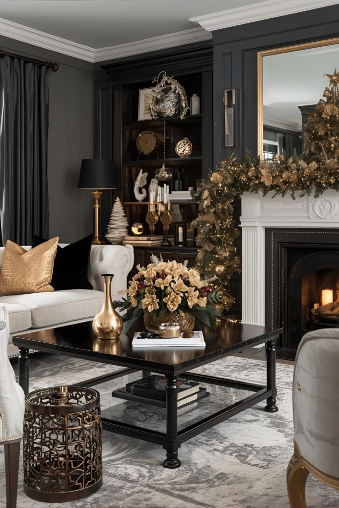 Champagne tones work beautifully with black, gold, and white to create a refined palette. Incorporate champagne-colored ribbons, baubles, or candles to add understated luxury to your elegant Christmas decor.