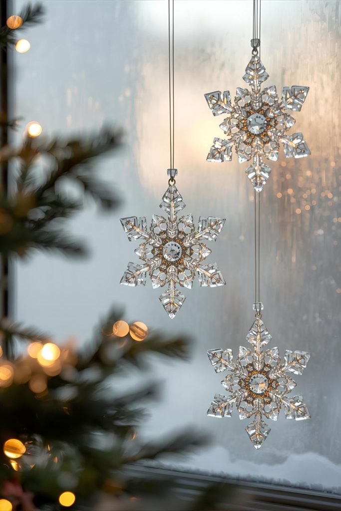 Crystal snowflakes catch the light and add sparkle wherever they hang. They’re a delicate way to bring seasonal magic to bedrooms, bathrooms, or even workspaces.