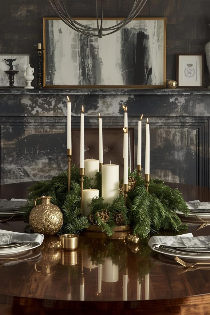A statement centerpiece can change the entire feel of your dining room. Choose one that combines candles, greenery, and metallic elements to balance simplicity with luxury. This piece will draw eyes and invite conversation during holiday meals.