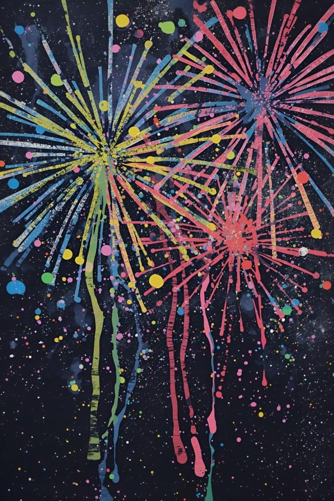 Celebrate the excitement of fireworks indoors by creating a bright canvas. Start with black or dark blue cardstock. Kids can use neon paints to make splashes that mimic fireworks. Add glitter trails on wet paint to make sparks shimmer.