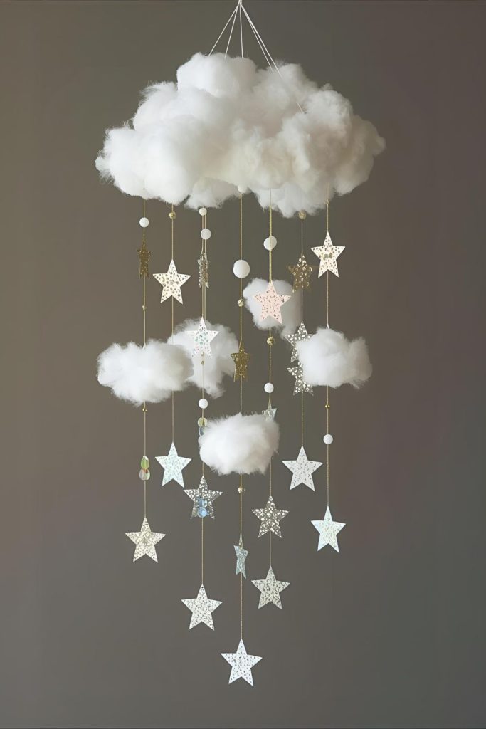 Sparkly Dream Cloud Mobile with Cotton, Sequins, and Paper Stars