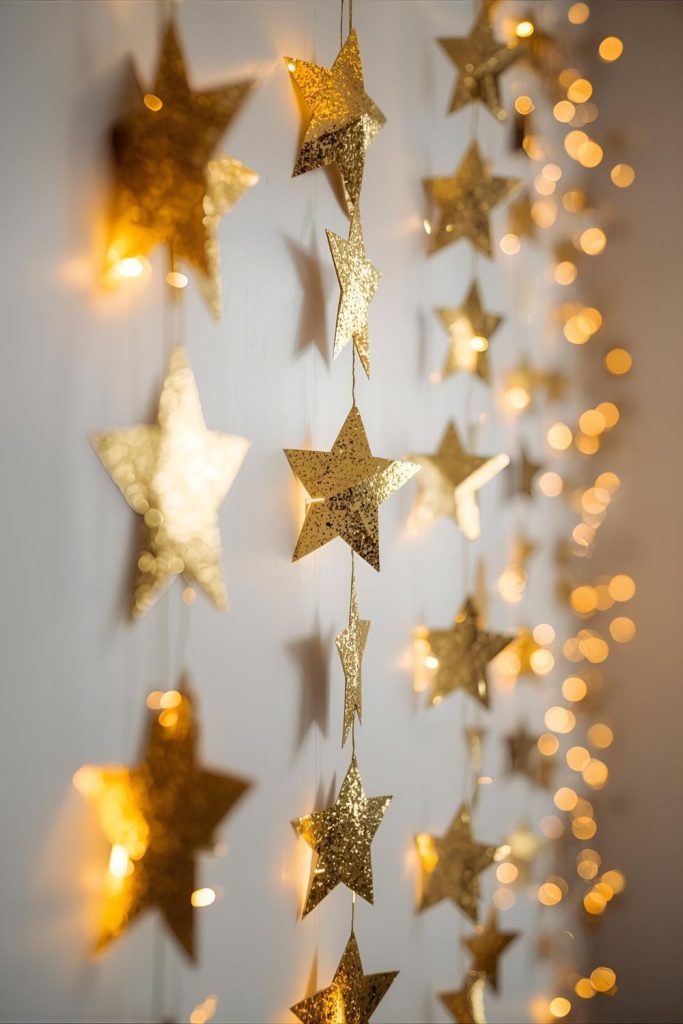 Star Garland Wall Display Made from Foil Paper and Glitter