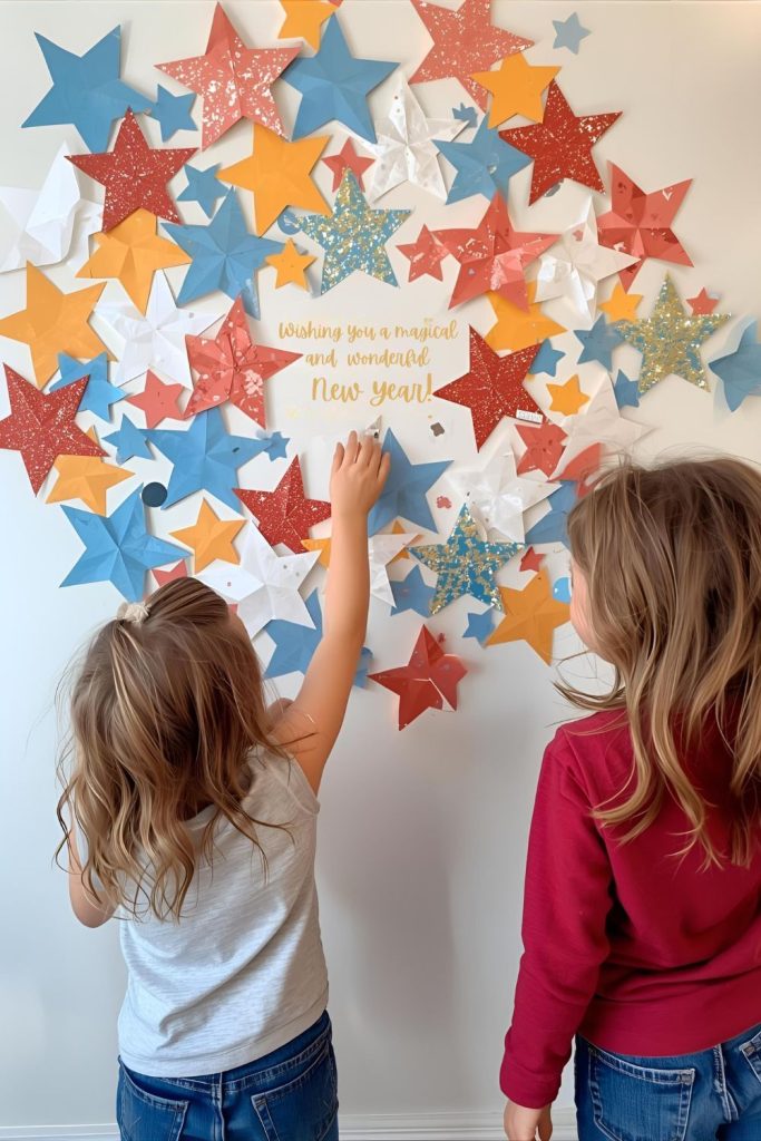 Create a wall of hopes and dreams. Use sticky notes or cut stars, pens, glitter, and wall-safe adhesive.