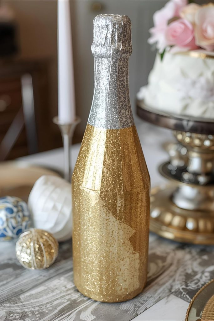 DIY Glittered Paper Champagne Bottle Centerpiece