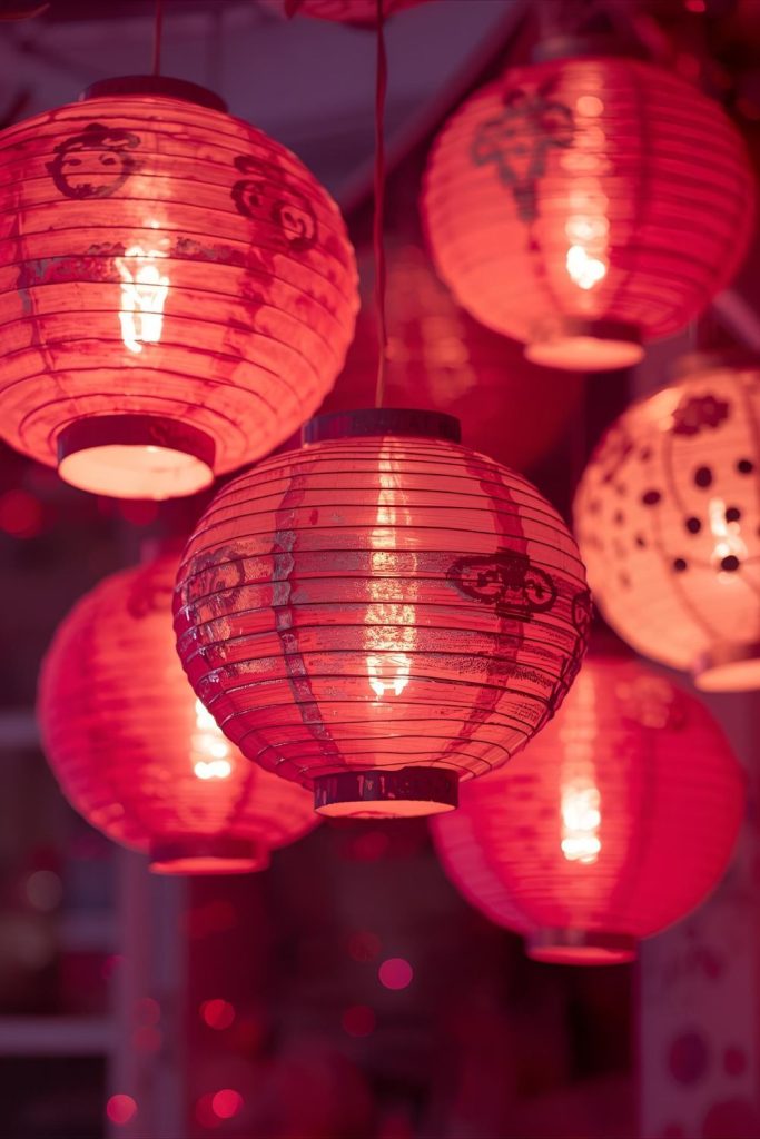 3D Layered Paper Lanterns Painted with Neon and Gold Accents