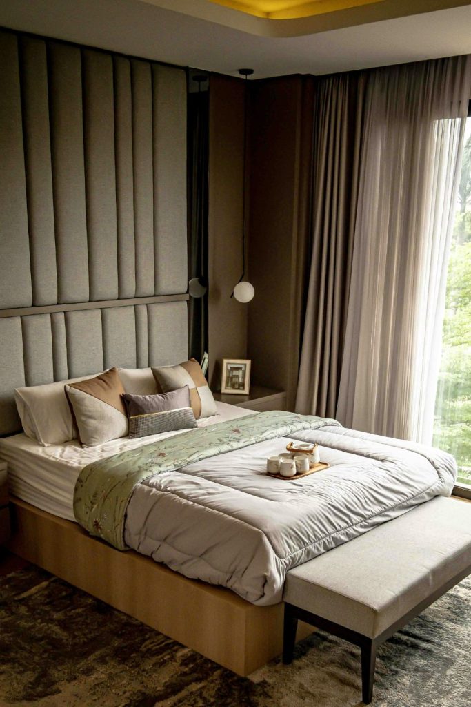 Ceiling-mounted shelves over the bed are great for displaying books, plants, or small decorative items. Since they’re overhead, they don’t take up floor space, which is essential in small bedrooms. Hanging shelves can also create a layered effect, adding height and visual interest to the room. They work well above desks, beds, or seating areas and are easy to install with basic hardware. Lightweight items are safest for these shelves to avoid hazards. For shared or studio apartments, these shelves add both storage and style, making the bedroom feel personalized without crowding the space.
