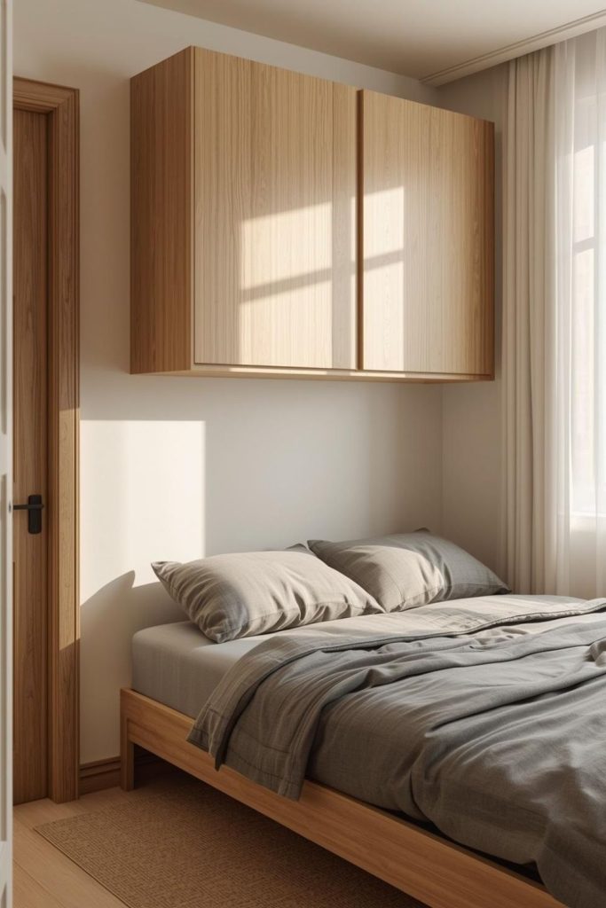 Overhead storage cabinets take advantage of vertical space above doors. They are perfect for seasonal items or things rarely needed. Slim cabinets do not intrude into the room, keeping floors clear. This furniture idea is discreet and highly practical in shared or studio apartments.
