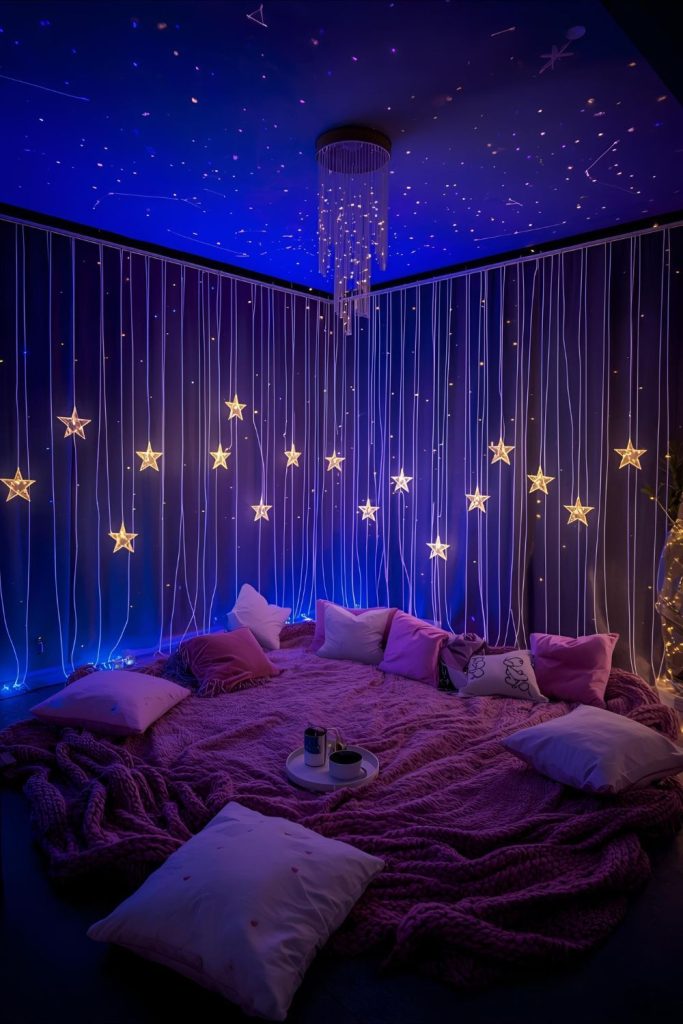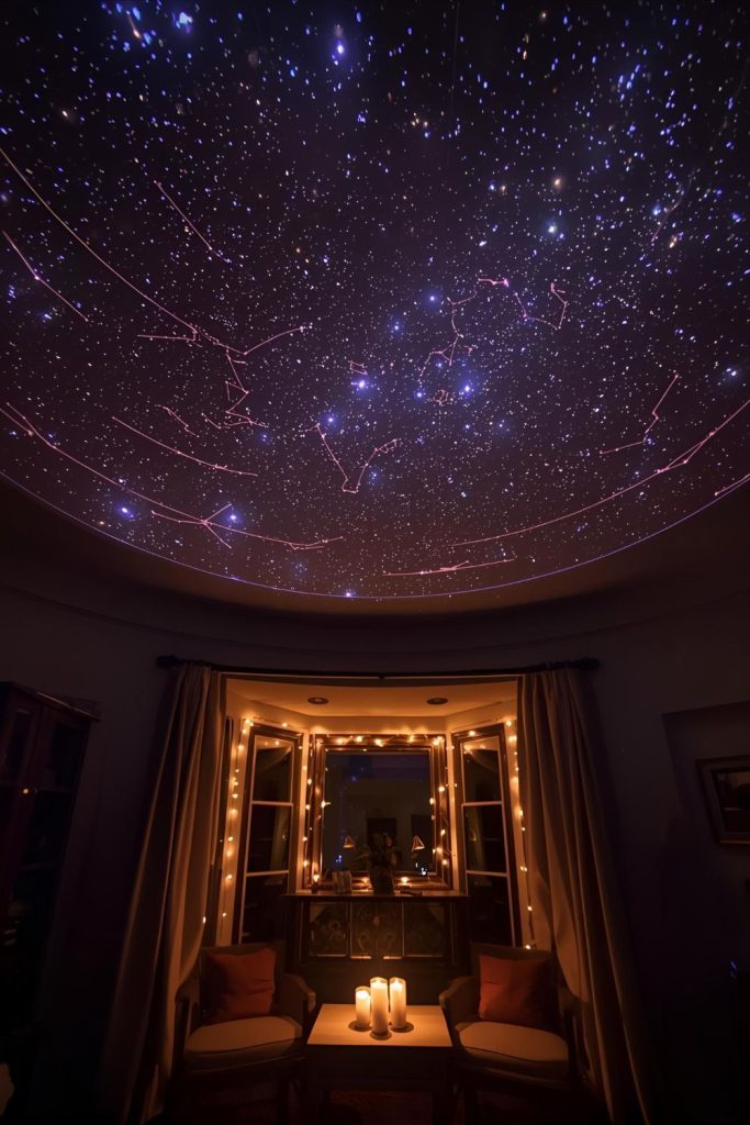 Valentines Day Party Ideas Using a Celestial-Themed Constellation Room Filled With Hanging Stars