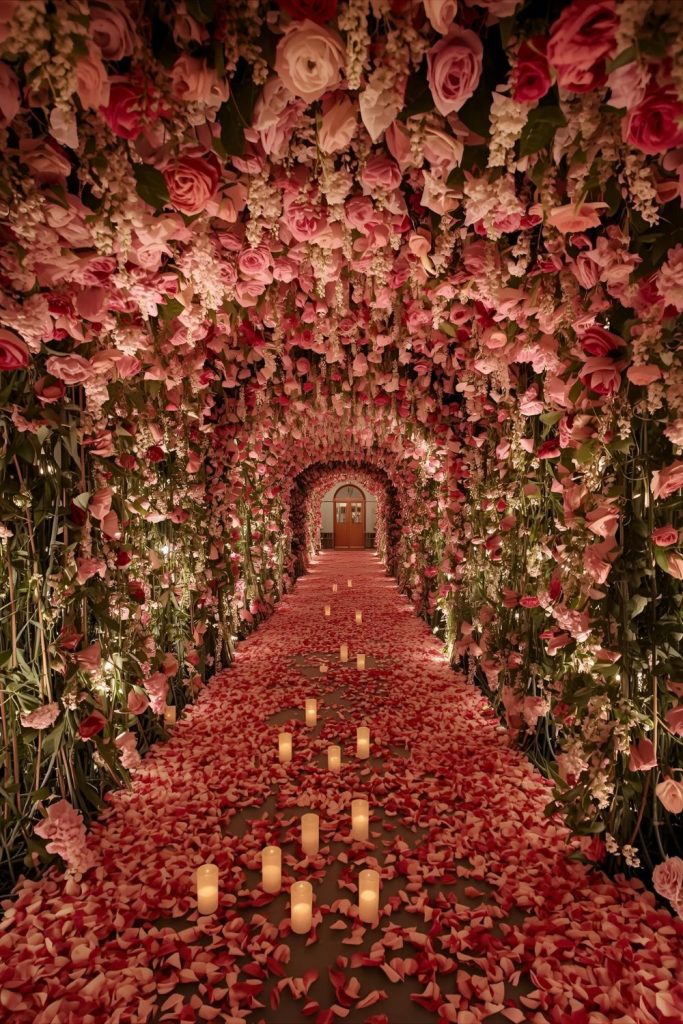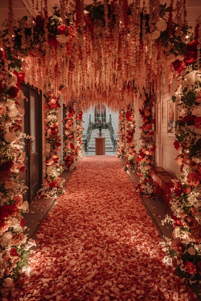 Valentines Day Party Ideas Showcasing an Immersive Floral Tunnel Pathway at Home