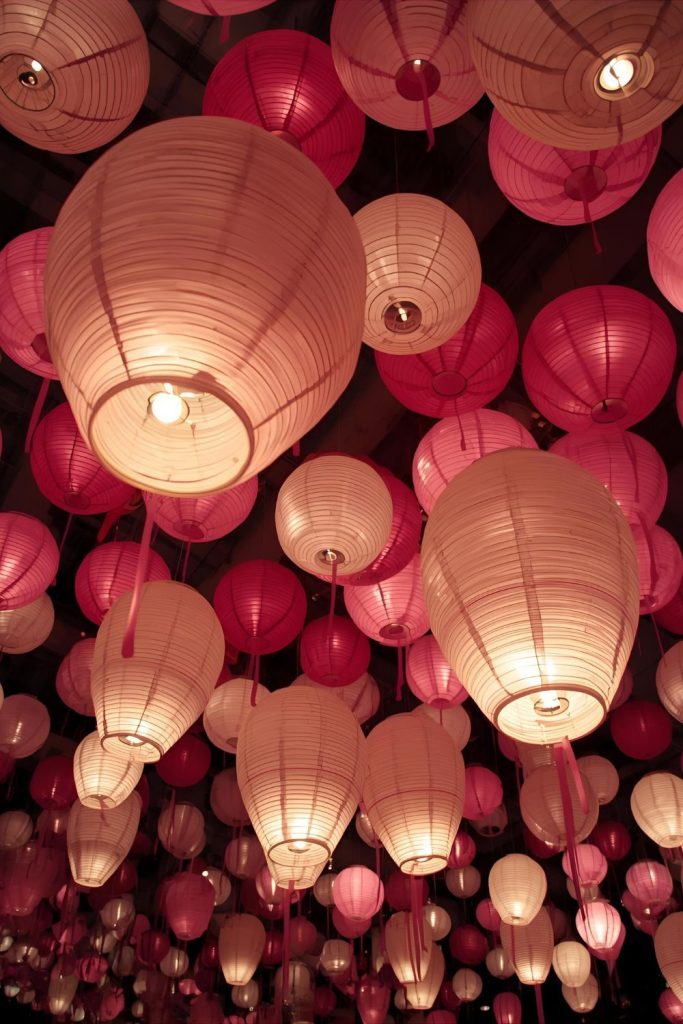 Valentines Day Party Ideas Using a Paper-Lantern Sky Installation Across the Ceiling