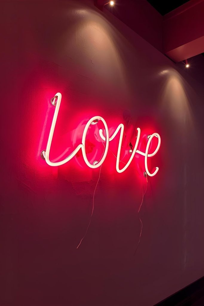 Valentines Day Party Ideas Using a Neon-Love Sign Wall With Ambient Pink and Red Lighting