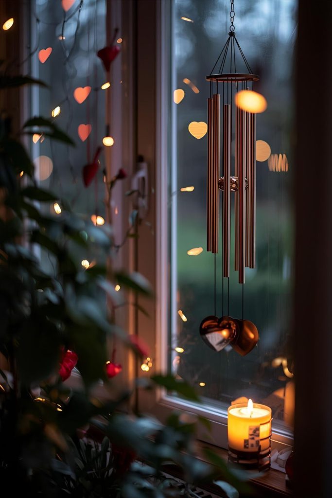 Hang delicate wind chimes near windows or doorways. The subtle sound creates a calming atmosphere, complementing soft lighting or other decor. This Valentines Day party idea engages both auditory and visual senses, offering relaxation and gentle romance that enhances any quiet evening together.
