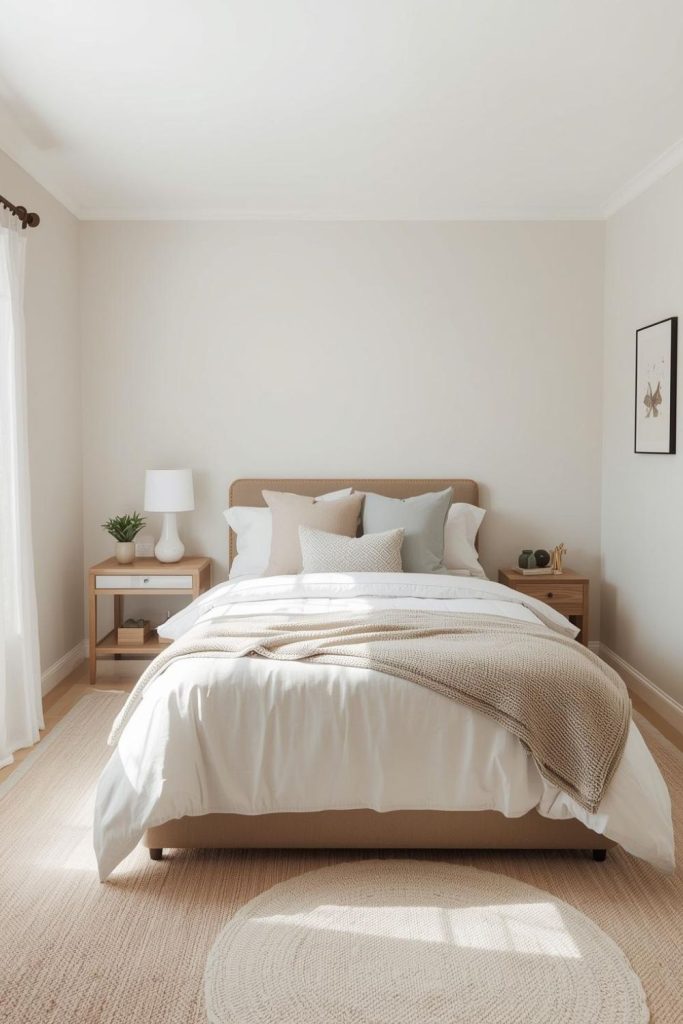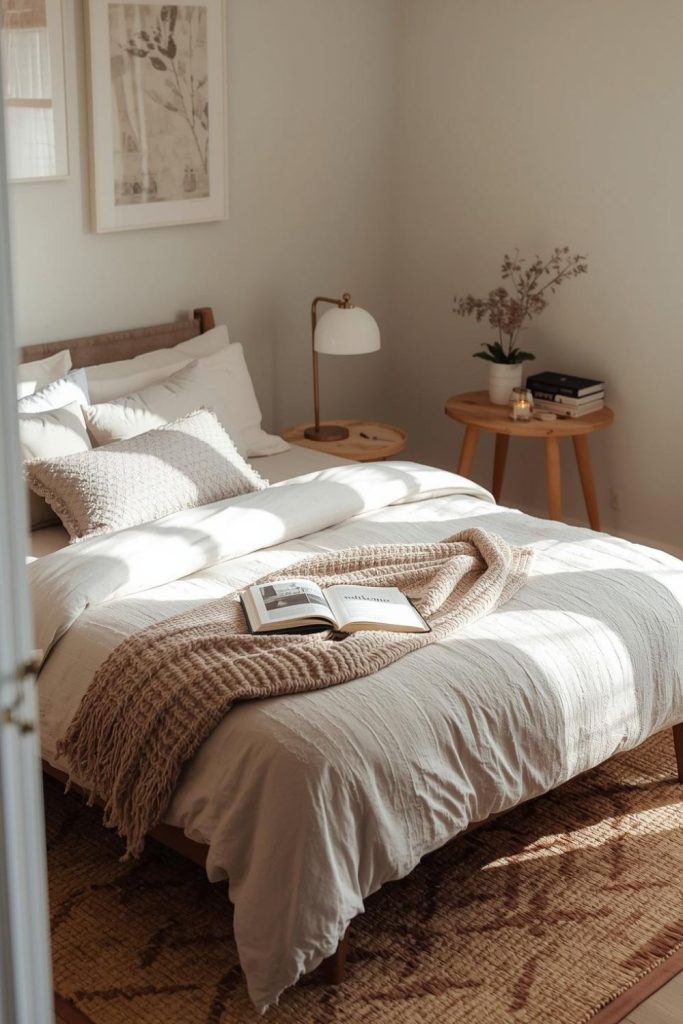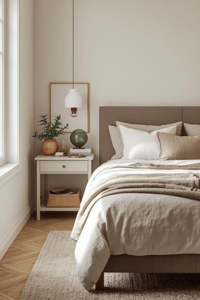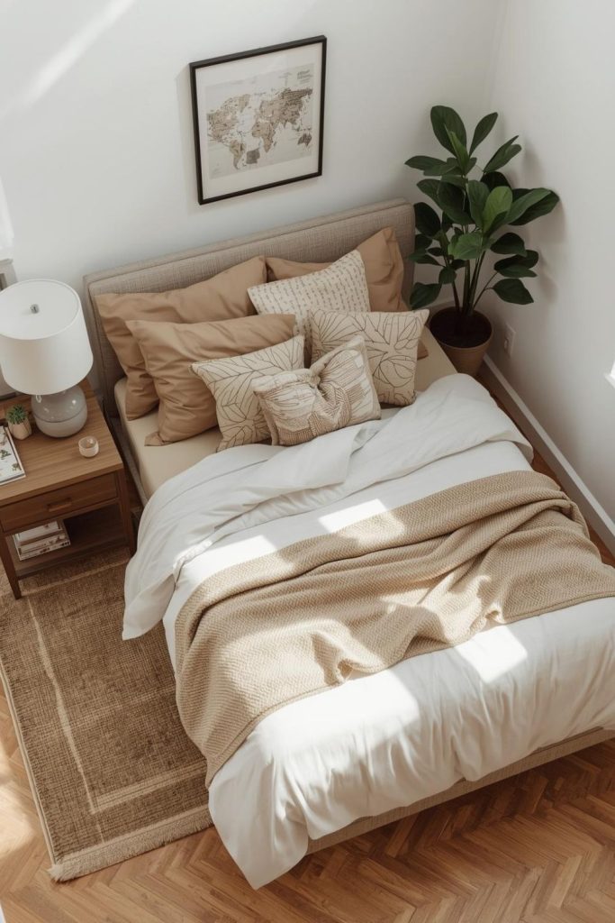 Start with bedding since it’s the main focus. Soft sheets, a cozy blanket, and a few pillows can make the bed feel inviting. Neutral colors work well because they create a calm and clean look. You don’t need expensive materials, just something that feels comfortable.