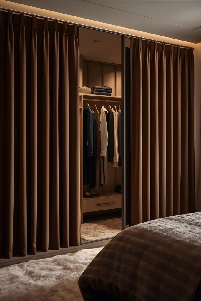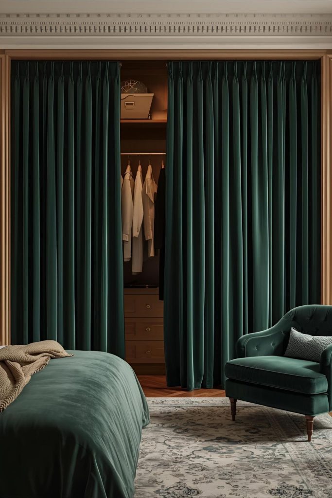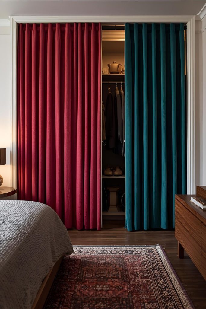 Using velvet curtain closet doors for a luxurious, soft interior feel