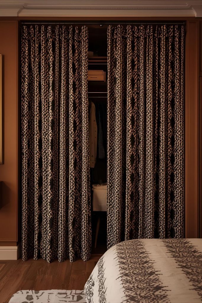 Colors play a huge role too; warm hues like terracotta, soft mustard, or muted rust can make a room feel more intimate, while cool-toned hard doors often feel stark and uninviting. In addition, curtain closet doors allow for personalization through patterns, embroidery, or textures, giving each space a personality that hard doors rarely provide.