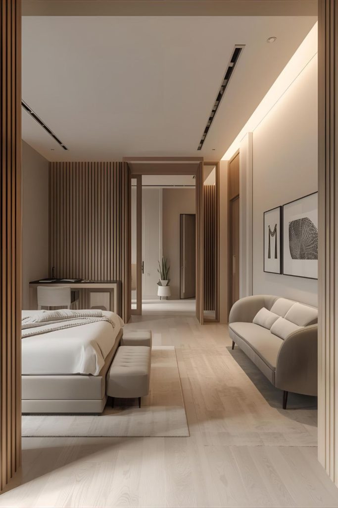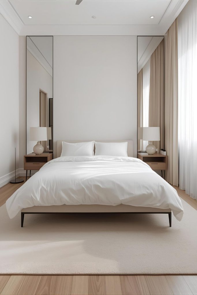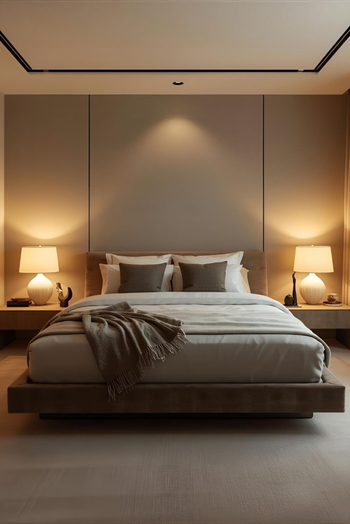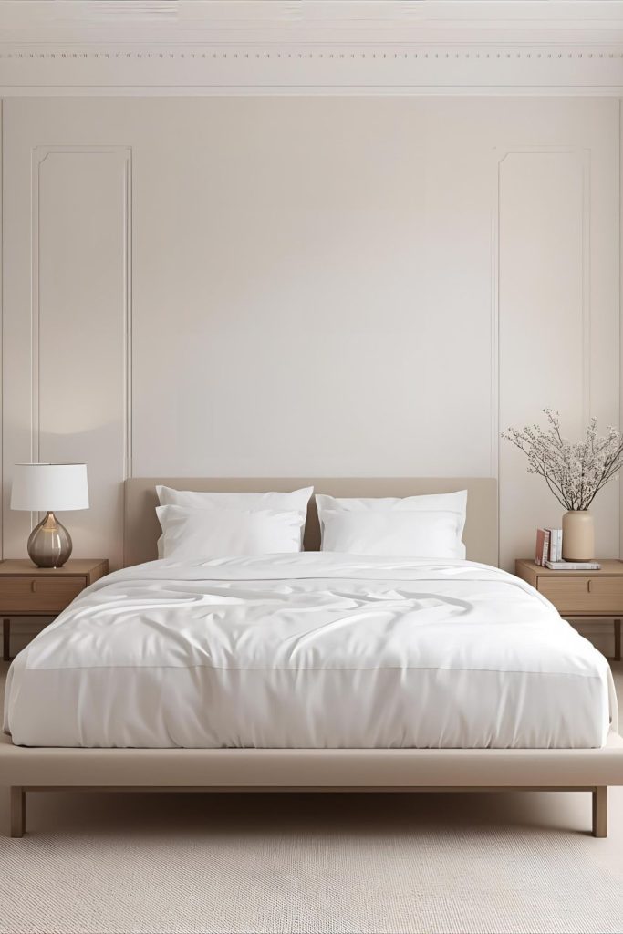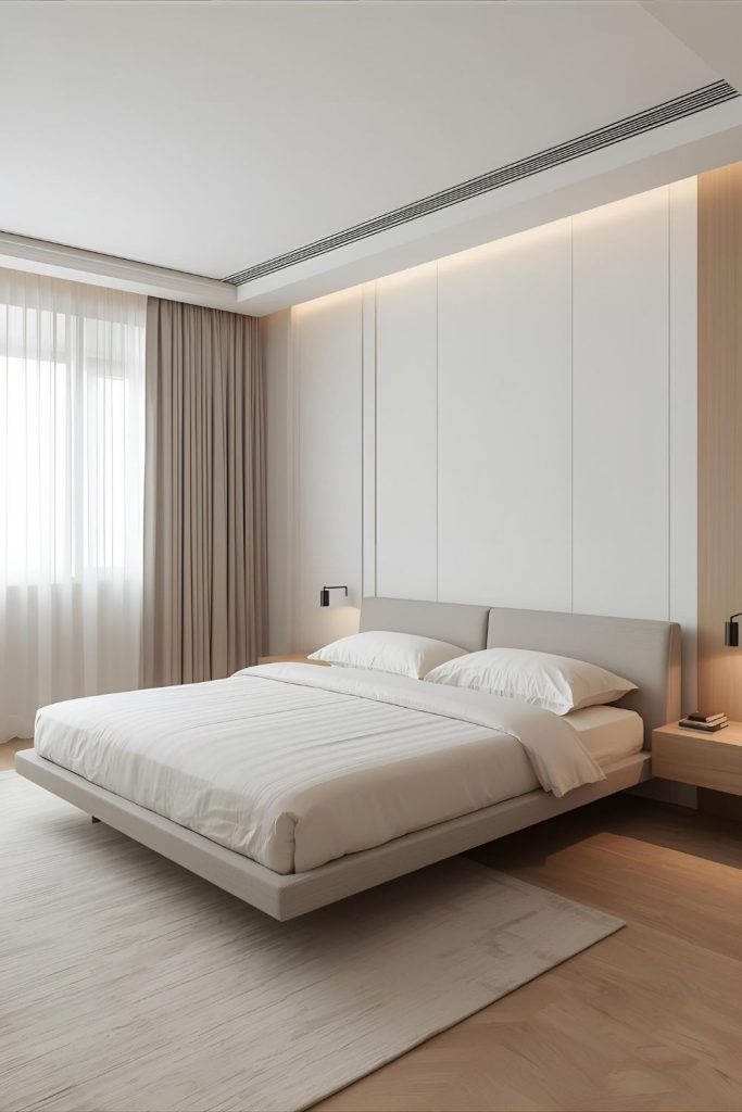 Neutral colors form the foundation of a modern minimalist bedroom. They create a sense of calm, make the room appear larger, and complement furniture and accents effortlessly. These colors are budget-friendly because inexpensive paint or affordable décor can still look cohesive.