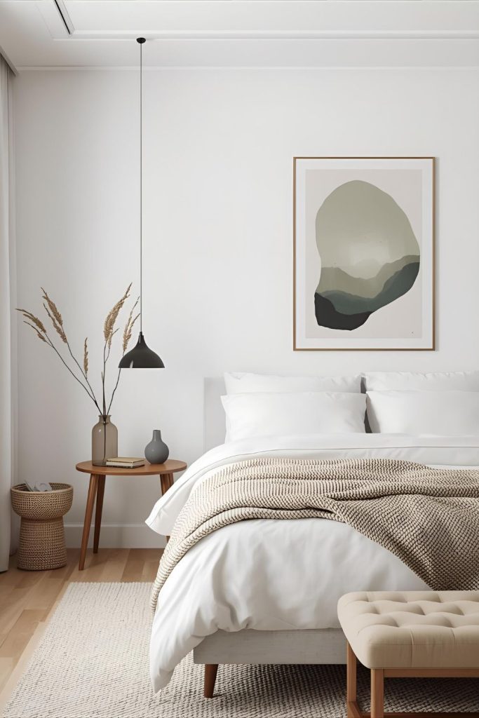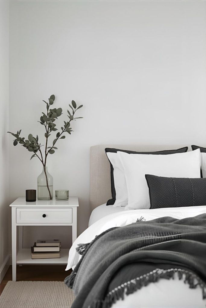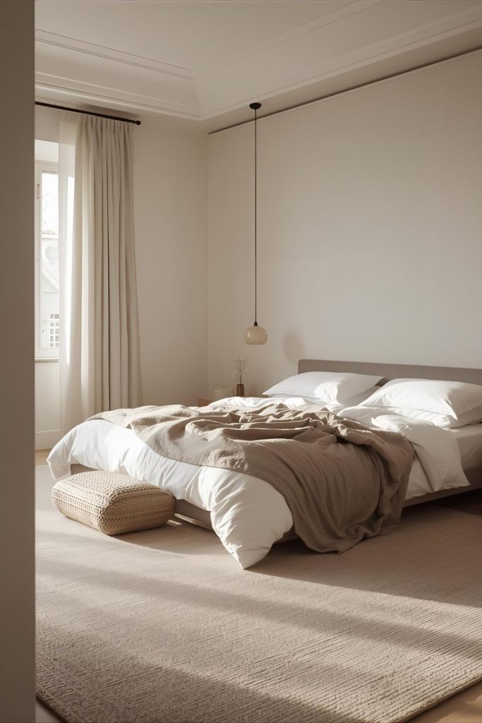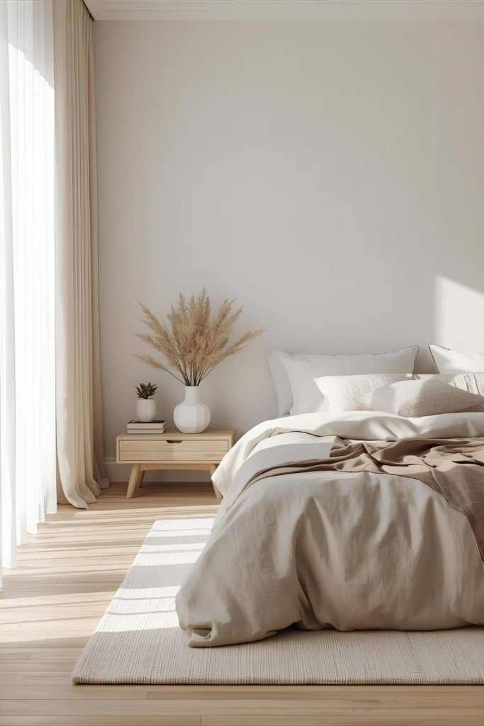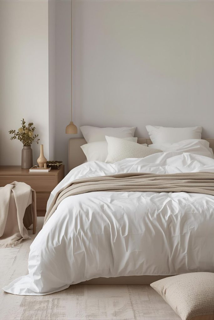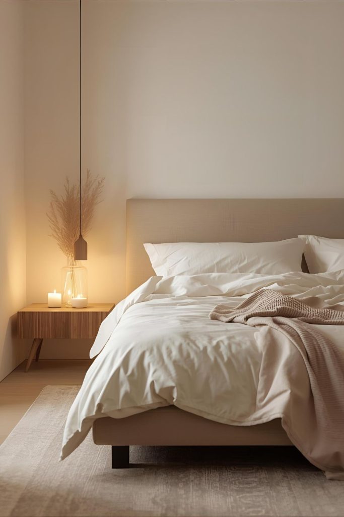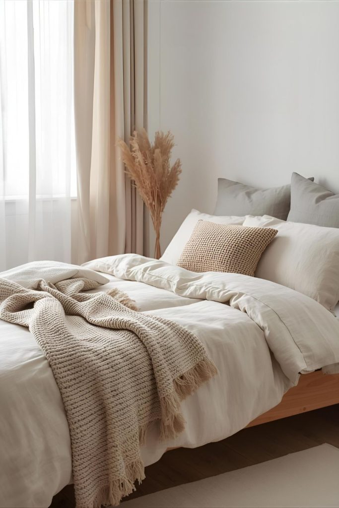 Textiles introduce softness and warmth without adding clutter. Linen or cotton bedding and lightweight throws create a layered, cozy feel while keeping the minimalist aesthetic intact. Texture prevents a neutral room from feeling cold or sterile.