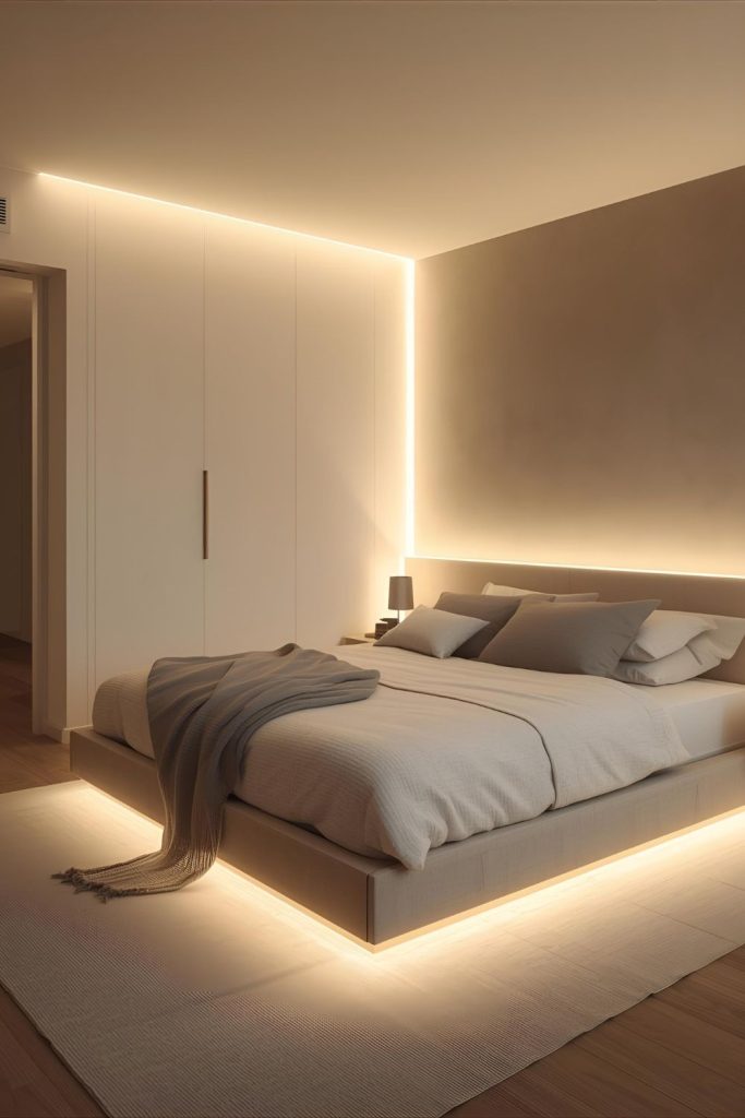 Install soft, warm LED lighting to create a calm and inviting minimalist mood