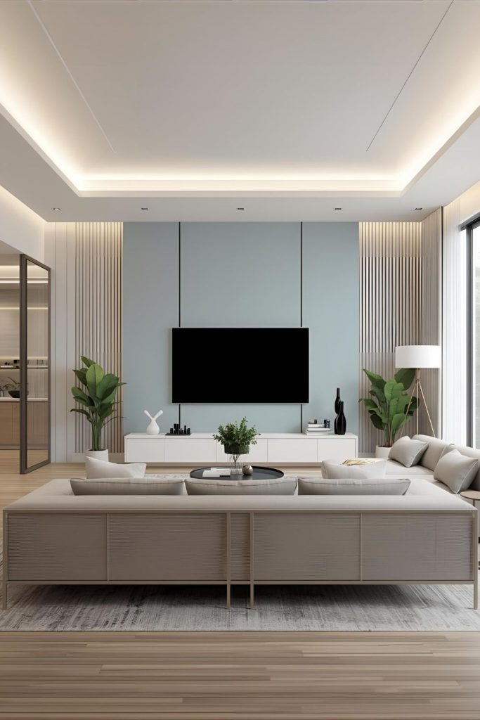 Light blue walls behind sofas bring calmness to living rooms while enhancing a sense of space. This soft tone works beautifully with neutral furniture and wood accents, creating a relaxing, airy atmosphere. Layered lighting and subtle décor can elevate the curated feel. It’s ideal for contemporary or minimalist interiors that prioritize openness and serenity, while the color enhances natural light, making the living room appear larger and more inviting.