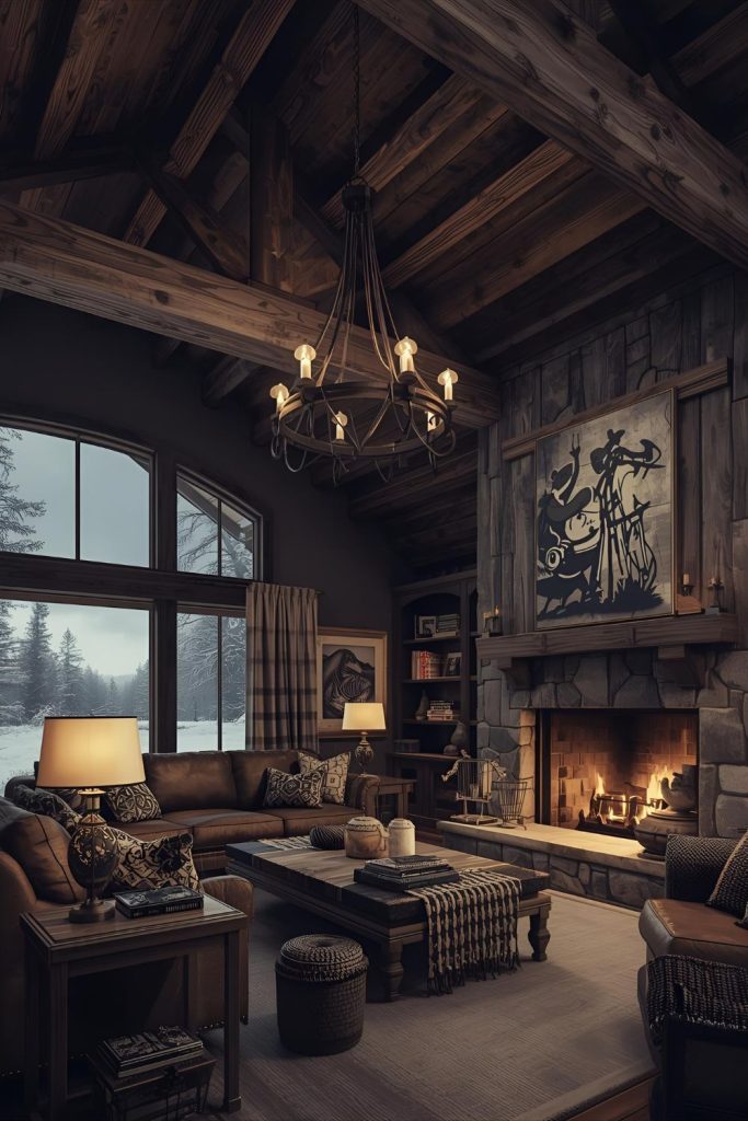 Lantern style lighting creates a soft glow in the room. This kind of lighting works especially well with the western living room ranch style because it reminds people of older homes before bright lights were common. Metal accents in bronze or iron help the fixtures look worn. Place lantern lighting near seating areas, shelves, or the fireplace so the room glows warmly. When combined with wood and leather the room feels peaceful and steady.
