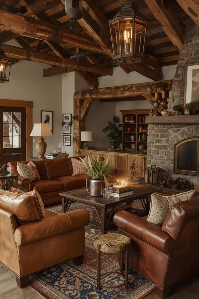 A western living room ranch style brings a warm kind of comfort that feels familiar even if its new to your home. Many people in their thirties to fifties are drawn to this look because it reminds them of a quiet evening, a peaceful countryside memory, or a home filled with meaningful objects that last longer than fast passing trends. This style focuses on wood, leather, and natural textures that age well and never go out of favor. It feels calm, steady and grounded which is why so many homeowners connect to it.
