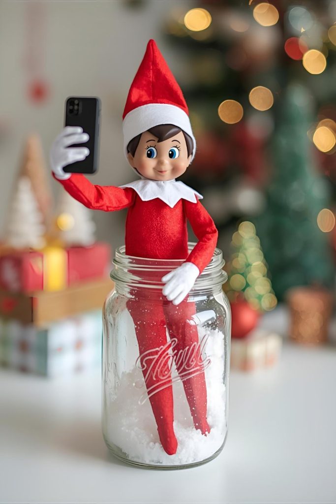 Make the elf look like it’s recording a short video.