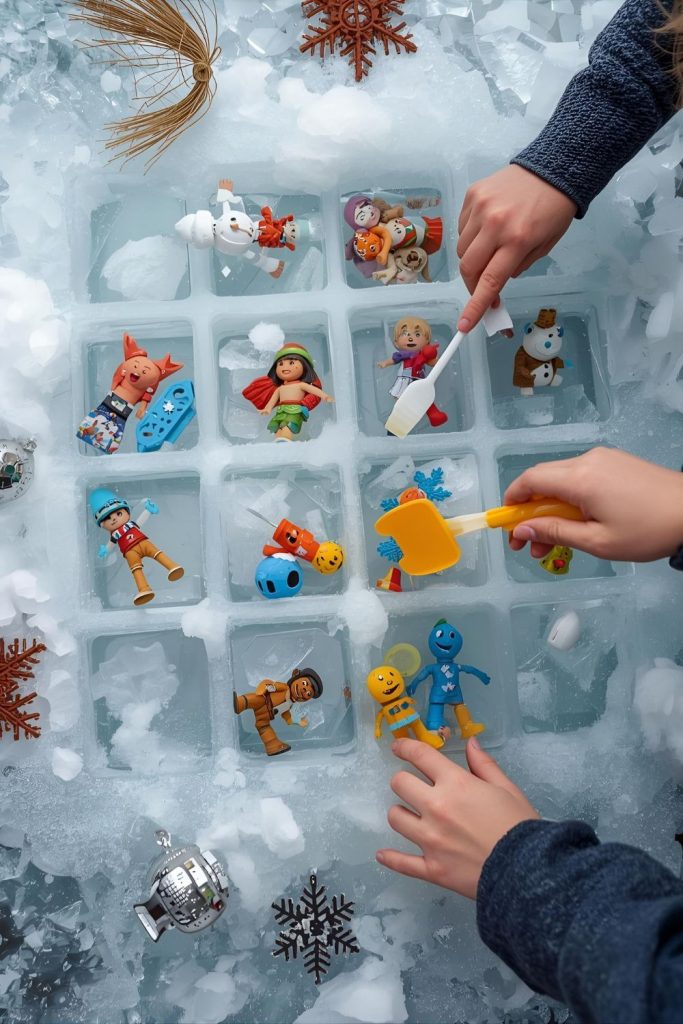 This is a cool, hands-on gift that feels like a little science project. Freeze small toys or trinkets inside ice blocks made in containers or cups. Include safe tools like plastic spoons, salt, or warm water spray bottles for “excavation.” Package everything in a box with instructions. Kids get to chip away and rescue hidden treasures, which is thrilling and keeps them busy. This diy christmas gift for kids works well because it uses everyday stuff and turns playtime into discovery, perfect for winter days.
