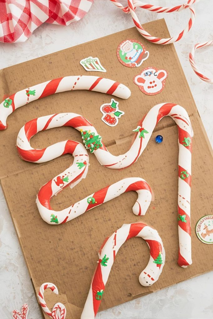 Create a small maze on a board where kids guide a candy cane through paths to a goal. You’ll need a cardboard piece or thick paper, markers, tape, and a candy cane or small ball. Draw or tape paths to form a maze with twists and turns. Kids use the candy cane like a little slider to reach the end. You can add obstacles or checkpoints for more challenge. This gift promotes problem-solving and fine motor skills. It’s easy to make, light to wrap, and gives kids a simple but engaging activity after unwrapping.