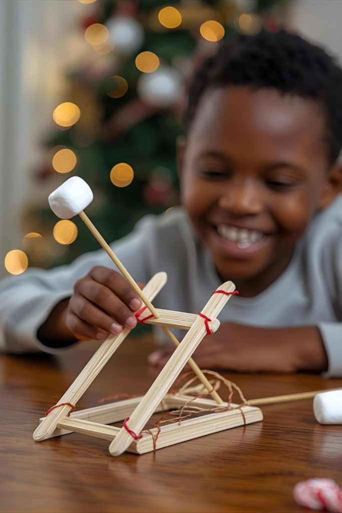Kids love launching mini marshmallows around, and this kit lets them do it safely indoors. For this diy christmas gift for kids, gather popsicle sticks, rubber bands, mini marshmallows, and plastic spoons. To build, stack and rubber band three sticks for the base, then attach a spoon to act as the launcher. Pack a small bag of marshmallows with the assembled catapult in a box. Add simple instructions for launching distance or aiming games. This gift encourages play and can be made quickly with household items. It’s perfect for active kids who want a bit of silly fun during the holidays.