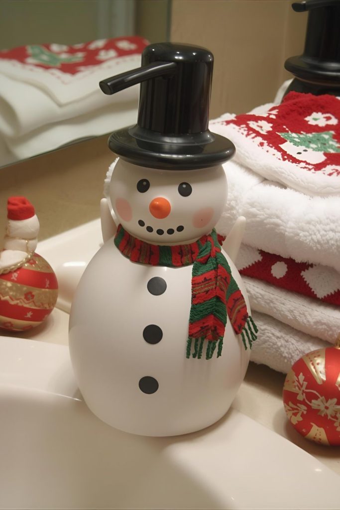 Turn a plain soap dispenser into a winter buddy kids will love. You’ll need a small clear pump bottle, white acrylic paint, black paint or markers, orange for the nose, and some ribbon or felt scraps. Paint the bottle white, then add eyes, buttons, and a carrot nose. Tie a scarf around the neck with ribbon or felt to finish. Fill it with gentle soap, and you’ve got a useful gift that’s also decorative. This works well for kids who like helping out at the sink or taking care of their space. It’s quick to make but feels special because it’s handmade and playful.