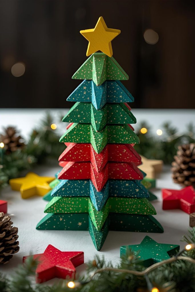 A stacking game shaped like a Christmas tree offers fun and challenge in one gift. You’ll need colored paper or felt cut into small triangle shapes, a cardboard base, and glue or double-sided tape. Cut triangles in varying sizes and colors, then create a base that stands upright. Kids can stack triangles from large to small or mix colors to build their own tree shapes. This game helps with hand-eye coordination and color sorting. It’s simple to make, light to wrap, and perfect for a quick diy christmas gift for kids that feels thoughtful and fun.