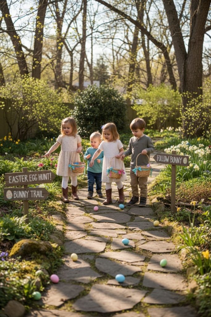 A DIY Easter trail allows children to follow a path of clues or hidden objects. You can use cards, small decorations, or even baskets to mark the trail. Children enjoy solving simple riddles or collecting small items along the way. This activity encourages problem-solving, observation, and exploration. It works well both indoors and outdoors and can be adjusted based on the number of participants or available space. DIY Easter trails are memorable Easter activities for kids that combine discovery, curiosity, and a little challenge.
