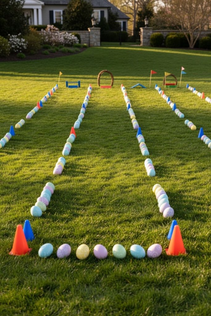 A bunny hop obstacle course is designed to make children move, jump, and balance like little bunnies. Using mats, hoops, and cones, set up a path that challenges agility and coordination. You can time children individually or allow them to go through as many times as they like. This activity encourages gross motor skills and friendly competition, all while being safe and playful. Indoor versions work with limited space, and outdoor courses can include more elements for excitement. Bunny hop obstacle courses are energetic Easter activities for kids that combine fun, movement, and laughter effectively.