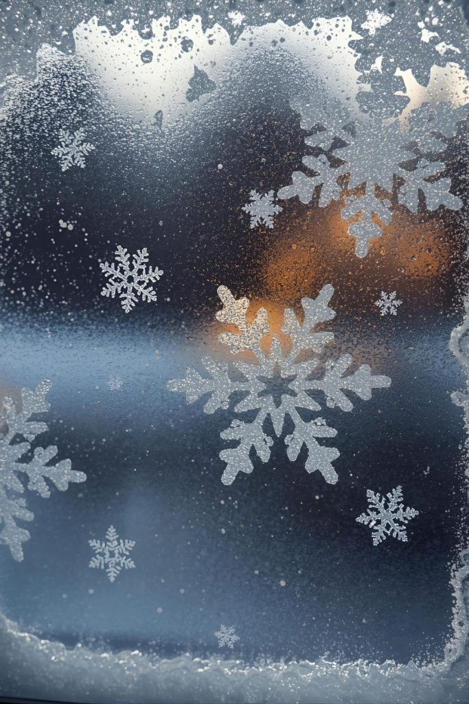 Spray-on faux snow is a classic for a reason. It gives windows that frosted, cold look instantly, without any mess from real snow. Spray lightly on the edges or in patterns like snowflakes or icicles.