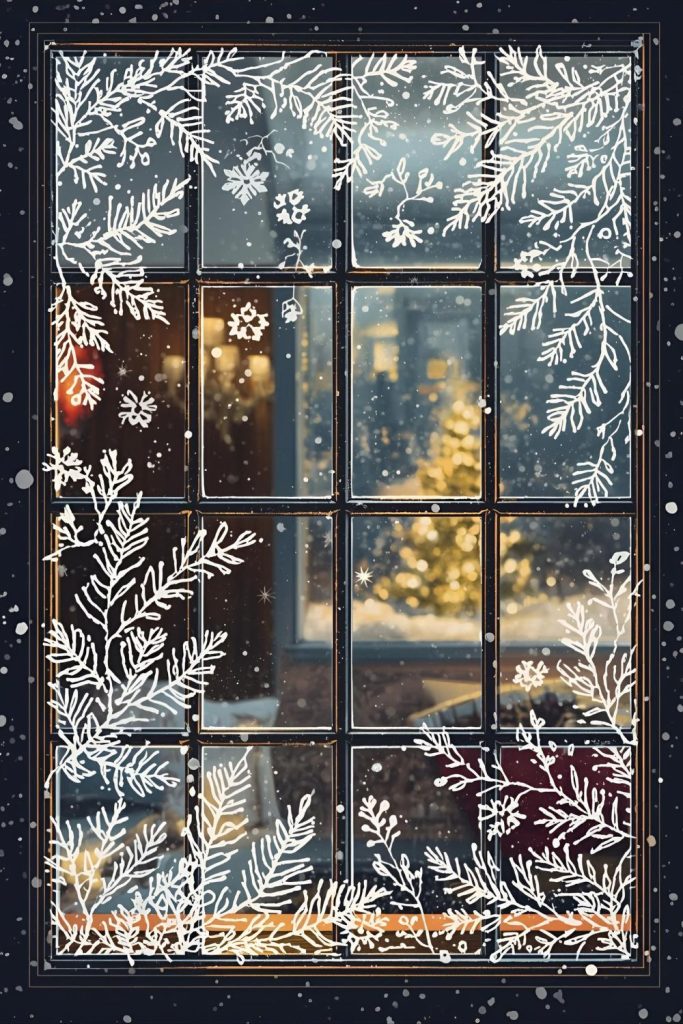 A white paint pen lets you draw delicate snow-covered branches or pine boughs directly on glass. This adds an artistic, handcrafted feel without bulky decorations.