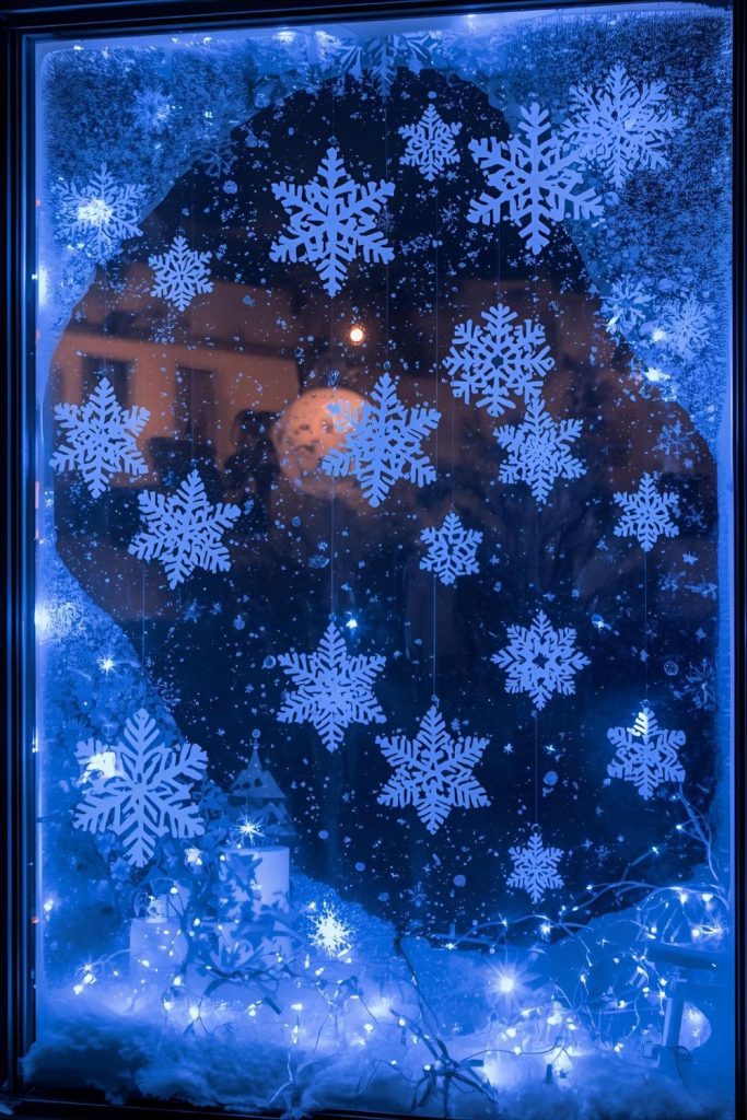 Paper snowflakes are a timeless Christmas window decoration. Cutting them by hand adds a personal touch that store-bought decorations can’t match. Start by folding white or light blue paper, then cut out intricate shapes for snowflake designs. Vary the size and pattern to add dimension and interest.